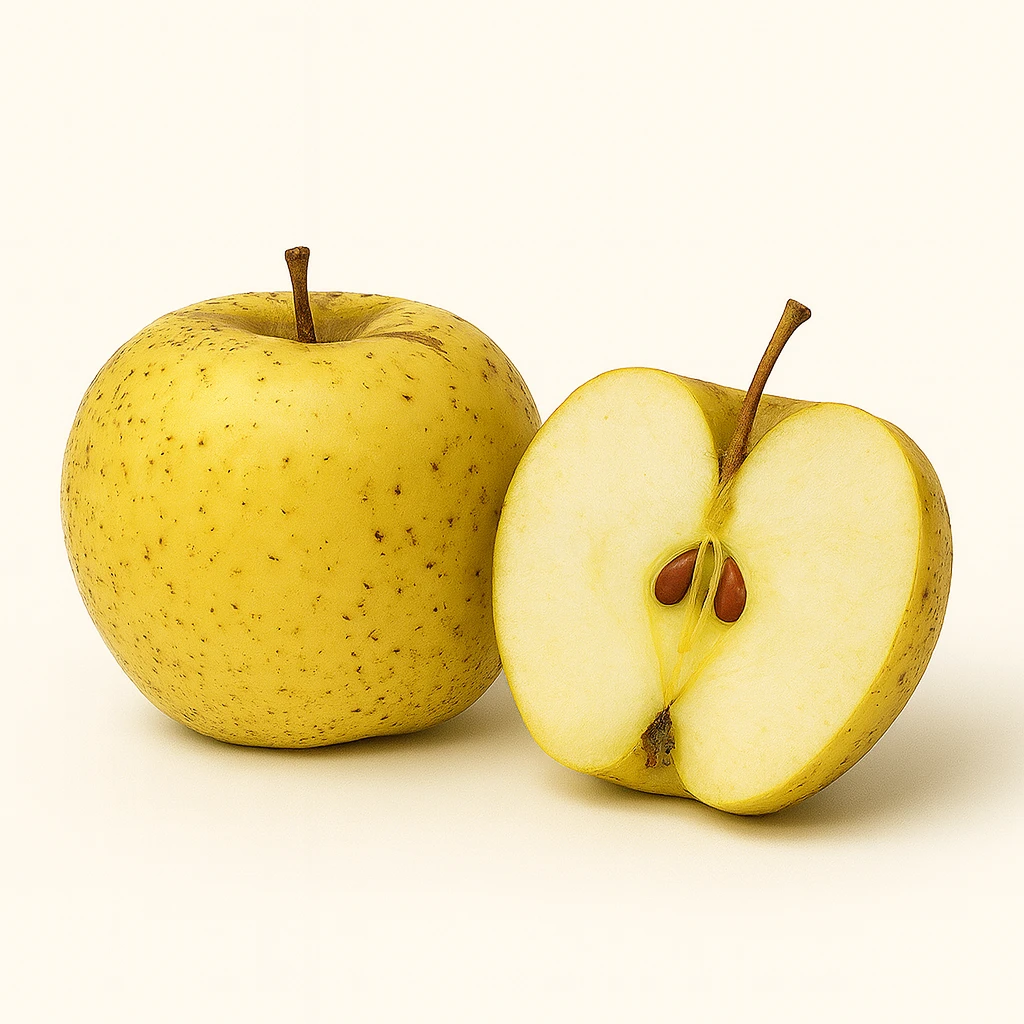 La Golden, avec sa couleur jaune soleil et son équilibre parfait entre sucre et acidité, est la pomme passe-partout par excellence. Sa chair fine et fondante révèle une douceur subtile qui plaît aux petits comme aux grands.